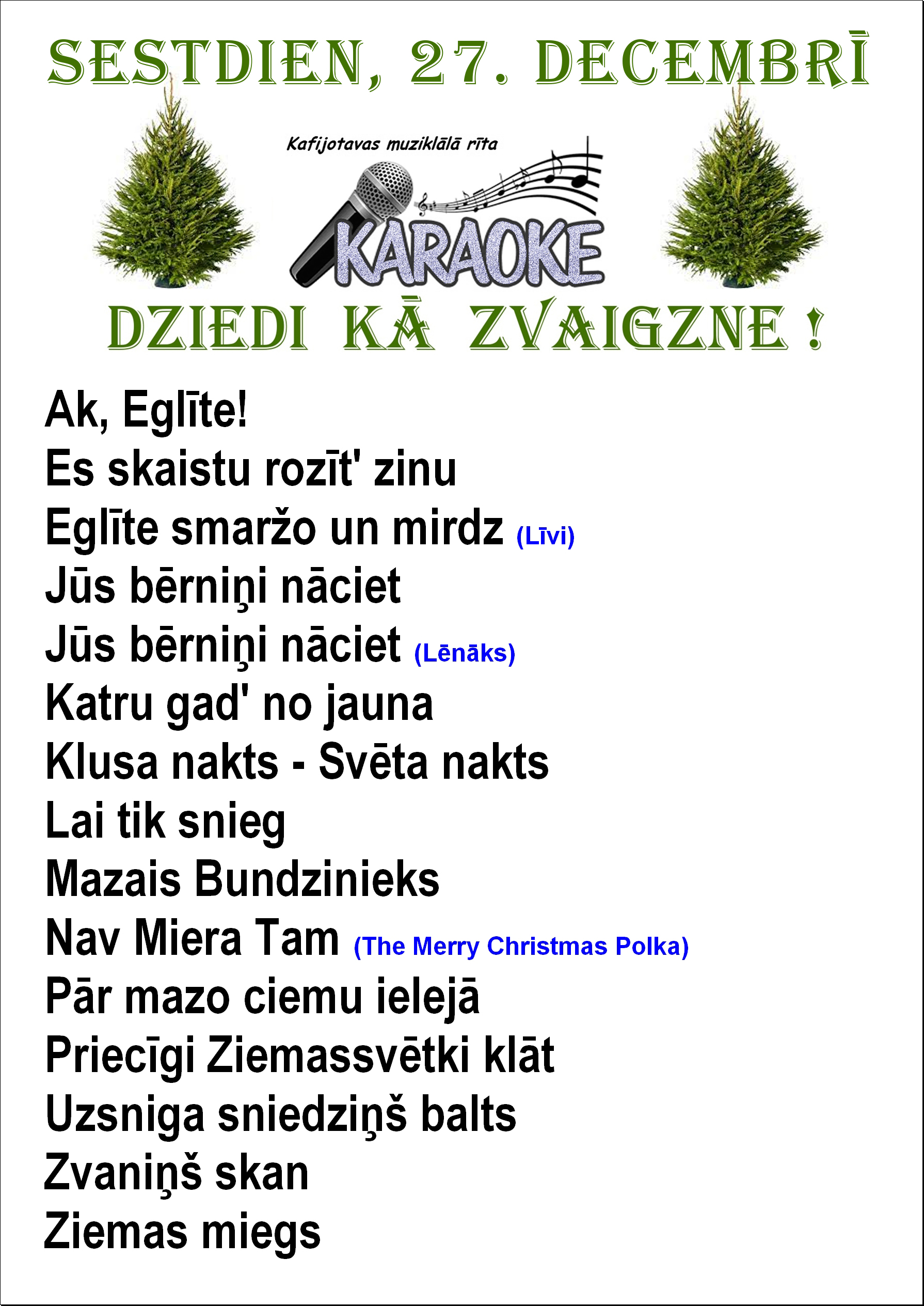 AICINĀM ARĪ JŪS AR SAVU BALSI DAŽĀDOT ZIEMSVĒTKU NOSKAŅU !