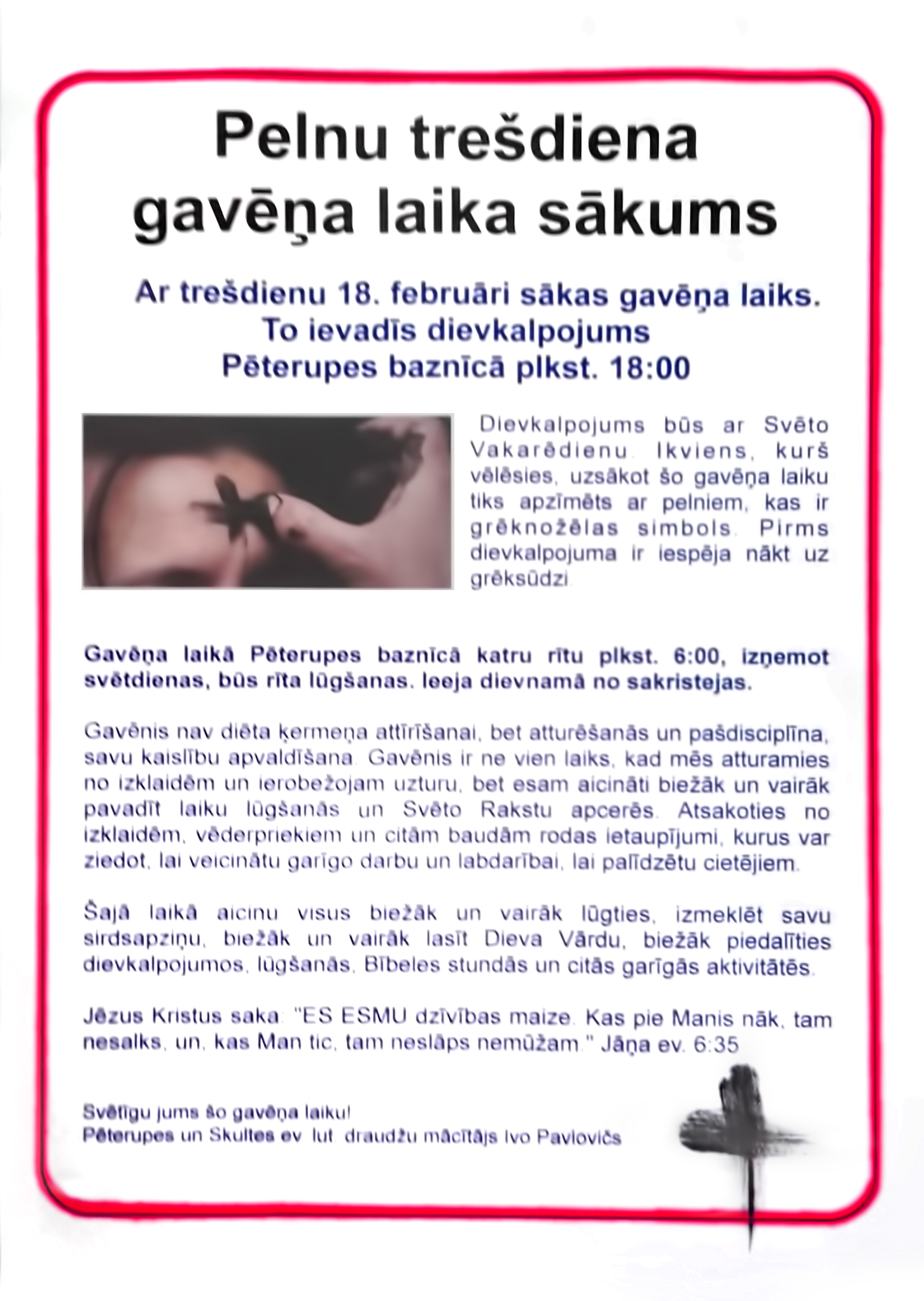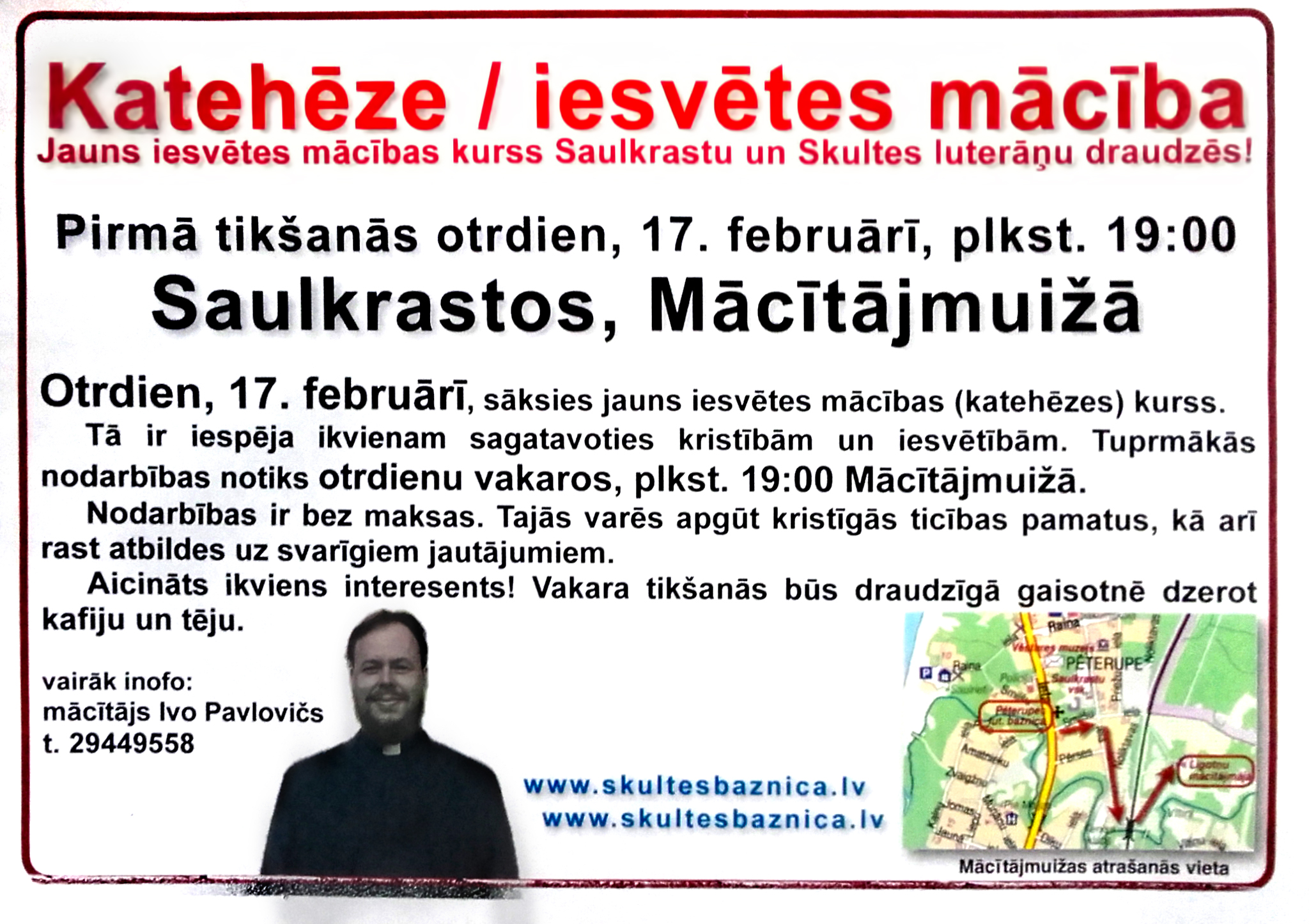 Draudzes mācītājs Ivo Pavlovičs 29449558 pavlovics.ivo@gmail.com